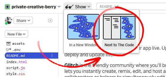 Click on "Show" next to your project name in the top left, and select "Next to the Code."